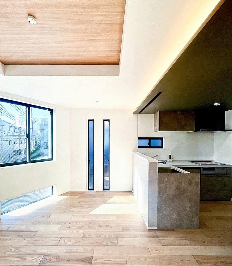 目黒区の賃貸マンションにお住まいだったご家族。住み慣れた土地から離れず、駅近の物件を探していたところ、偶然いつも通る道に空き地を見つけられ、オープンハウスにご連絡をいただきました。自宅に友人を招く機会も多いとのことで、開放的なリビングとキッチンをポイントに、収納スペースの確保とアートが好きなご主人様のご趣味をすみずみにまで反映したご自宅となっています。