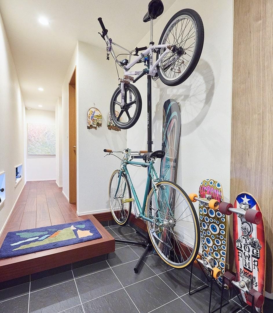元々湘南エリアのメゾネット型賃貸住宅にお住まいだったご夫妻。仕事のサーフィンをより快適にできる環境を探して同じ湘南エリアで物件を探していました。立地を重要視していた最中、運命的な出会いを果たしセミオーダーでご自宅を建てられました。プロサーファーであるご主人のこだわりを形にした理想の空間を実現されています。