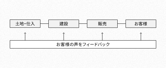 販売活動でいただいたお客様の声を仕入や建設にスピーディーにフィードバックし、よりお客様のニーズにあった住宅を開発しています。