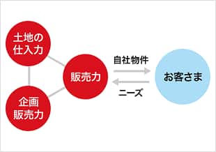 土地の仕入れから企画・設計・建築・販売までを行うことで