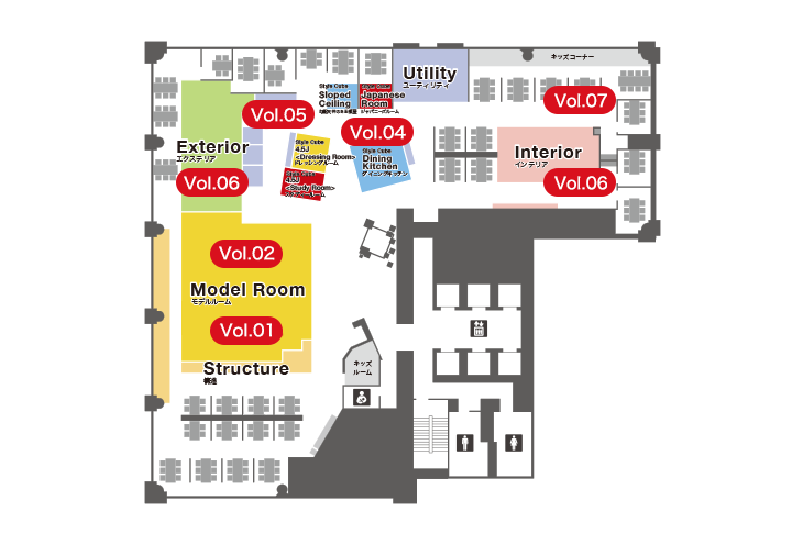 また、暮らしのシーンをイメージできる空間の活用やインテリアのトータルコーディネートもご提案しています。お打ち合わせスペースやキッズ・コーナーもご用意していますので、お気軽にご利用ください。