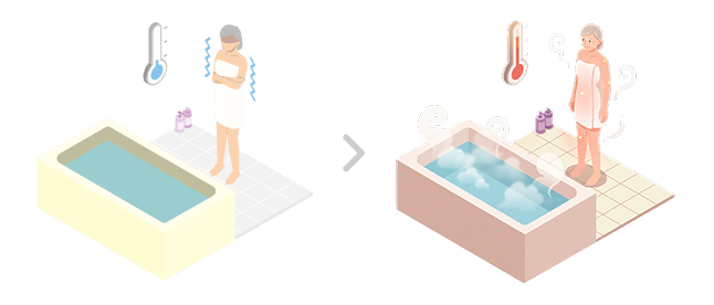 冬場のリビングと浴室の温度差を抑え、心疾患や脳血管疾患の要因となるヒートショックのリスクを軽減します。