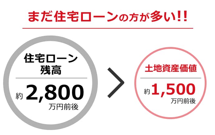 郊外の場合、土地の資産より住宅ローン残高が多いので、売却したとしても住宅ローンが残ってしまいます。