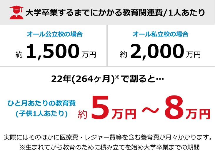「子どもが生まれてから月6万円を積み立てていくと22年間で1,584万円に。大学の入学金・初年度学費の払い込みには対応できる金額です。