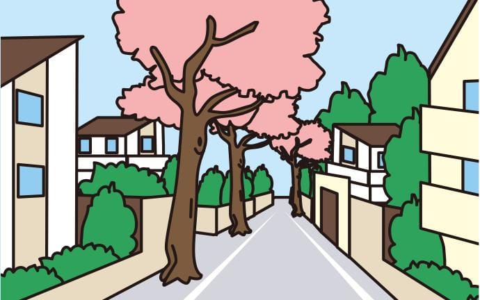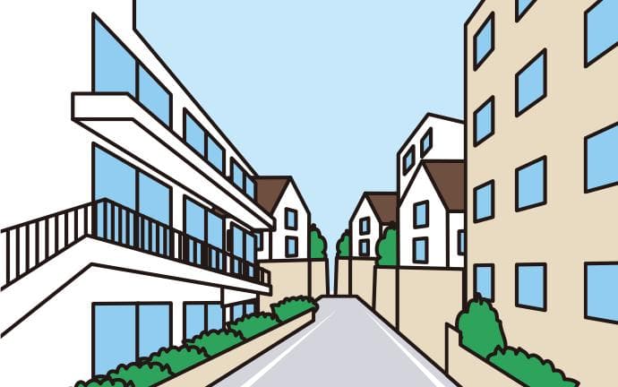 道路の沿道に広がる住宅エリア