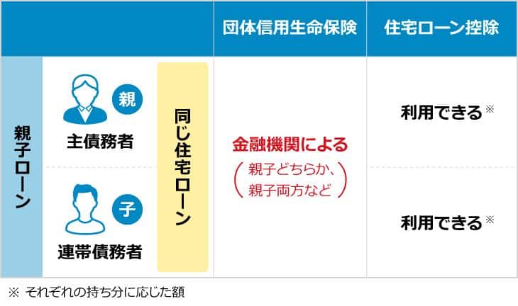 通常の住宅ローン同様、親子ローンでも団体信用生命保険(団信)へ加入できますが、子が加入するケースが一般的です。