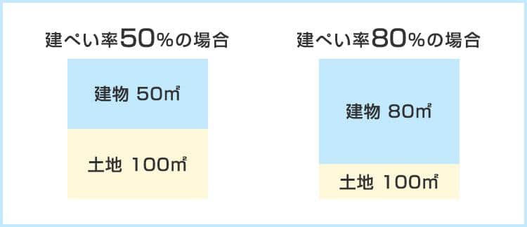 同じ土地面積であっても建ぺいの低い土地であれば建築できる面積は狭くなります。