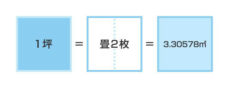 土地の広さを表す際、日本では「坪」という単位を用いることも多いですが、坪数で広さがイメージできない場合は畳に置き換えてイメージしてみましょう。1坪はおよそ畳2枚分です。身近なものほどイメージしやすくなります。