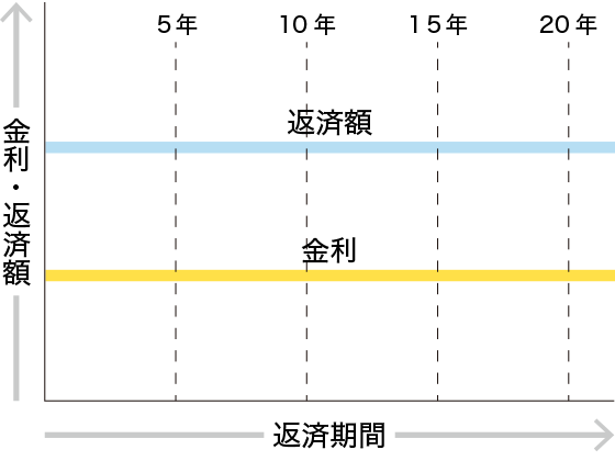 返済期間中を通して、借入時に確定した金利が変わらない金利タイプになります。