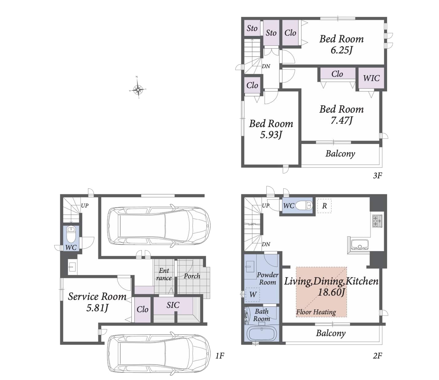 また、1階と3階には豊富な収納スペースがあるため、部屋をスッキリさせたい方におすすめです。