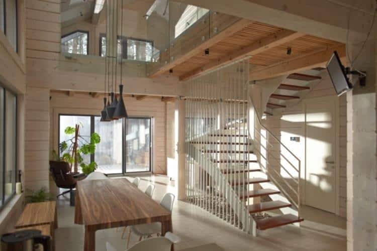 階段を螺旋状にすることで、おしゃれな内装になるだけではなく、吹き抜けのような開放感を実現できます。