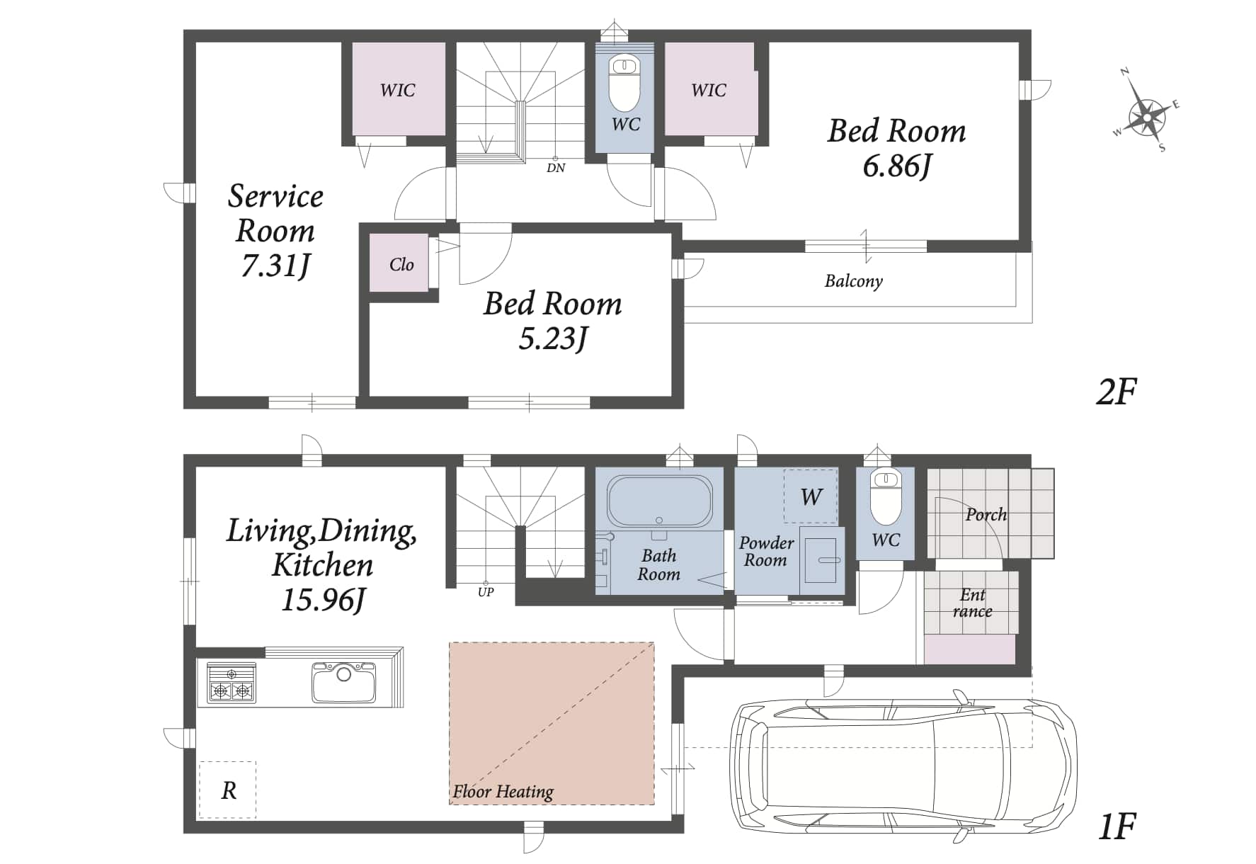 1階に浴室や洗濯機などの水回りをまとめるなど、フロアごとに用途を分けることで、部屋がスッキリとした印象になります。