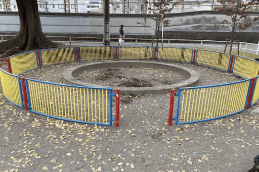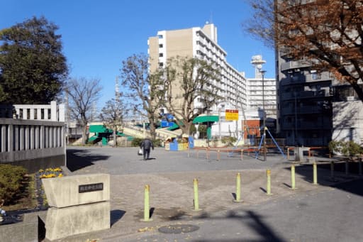 鶴見駅から徒歩5分の場所にある東口駅前通り公園は、ブランコや砂場ストレッチボードなどの設備があります。