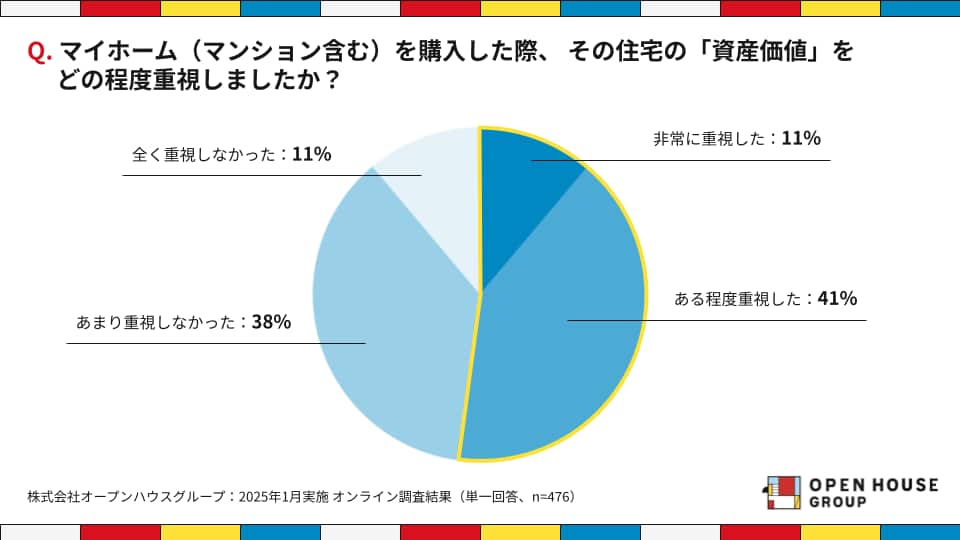 株式会社オープンハウスグループは、都市部(東京・神奈川・千葉・埼玉・大阪・福岡)の20代以上の住宅購入者476人を対象として、「マイホームの資産価値に関する意識調査」(以下、本調査)を実施しました。
