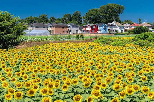 清瀬市は、自然と農のある暮らしを身近に感じられるのも特徴です。毎年夏に開催される清瀬ひまわりフェスティバルでは、約10万本のひまわりが咲き誇り、写真撮影や散策を楽しむ多くの人でにぎわいます。