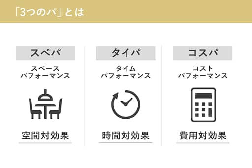 本記事では、限られた空間を使い切る「スぺパ(空間対効果)」、家事や移動を時短する「タイパ(時間対効果)」、将来の価値まで見据えた「コスパ(費用対効果)」の3軸を解説。
