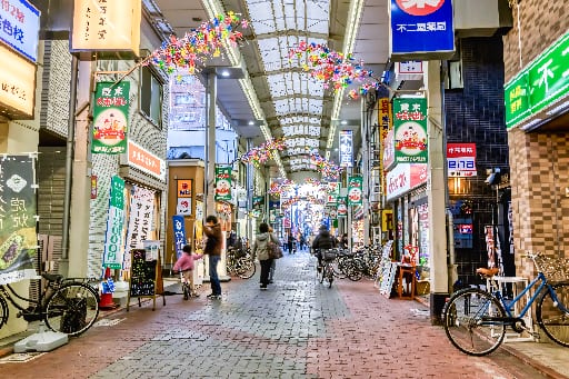 商店街の道沿いに食料品店や飲食店など約200店舗が並んでいます。特に手作りの惣菜を扱う店舗が多く、夕方には多くの住民で賑わいます。地域密着型の温かい雰囲気が魅力です。