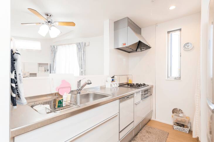 希望どおり、3階に3部屋ある家なので満足しています。私の一番のお気に入りは2階のLDKです。広すぎないところがちょうどいい。これ以上のスペースだと、無駄になったかもしれませんね。掃除もしやすいですし、生活するのにぴったりの広さです。ただ図面を最初に見たときは、キッチンに洗濯機スペースがあることに抵抗がありました。でも、炊事をしながら洗濯ができて、同じフロアのベランダに洗濯物を運ぶのもラクラクなんです。使ってみれば機能的だと気づいて、よく考えられているなと思いました。(奥様)