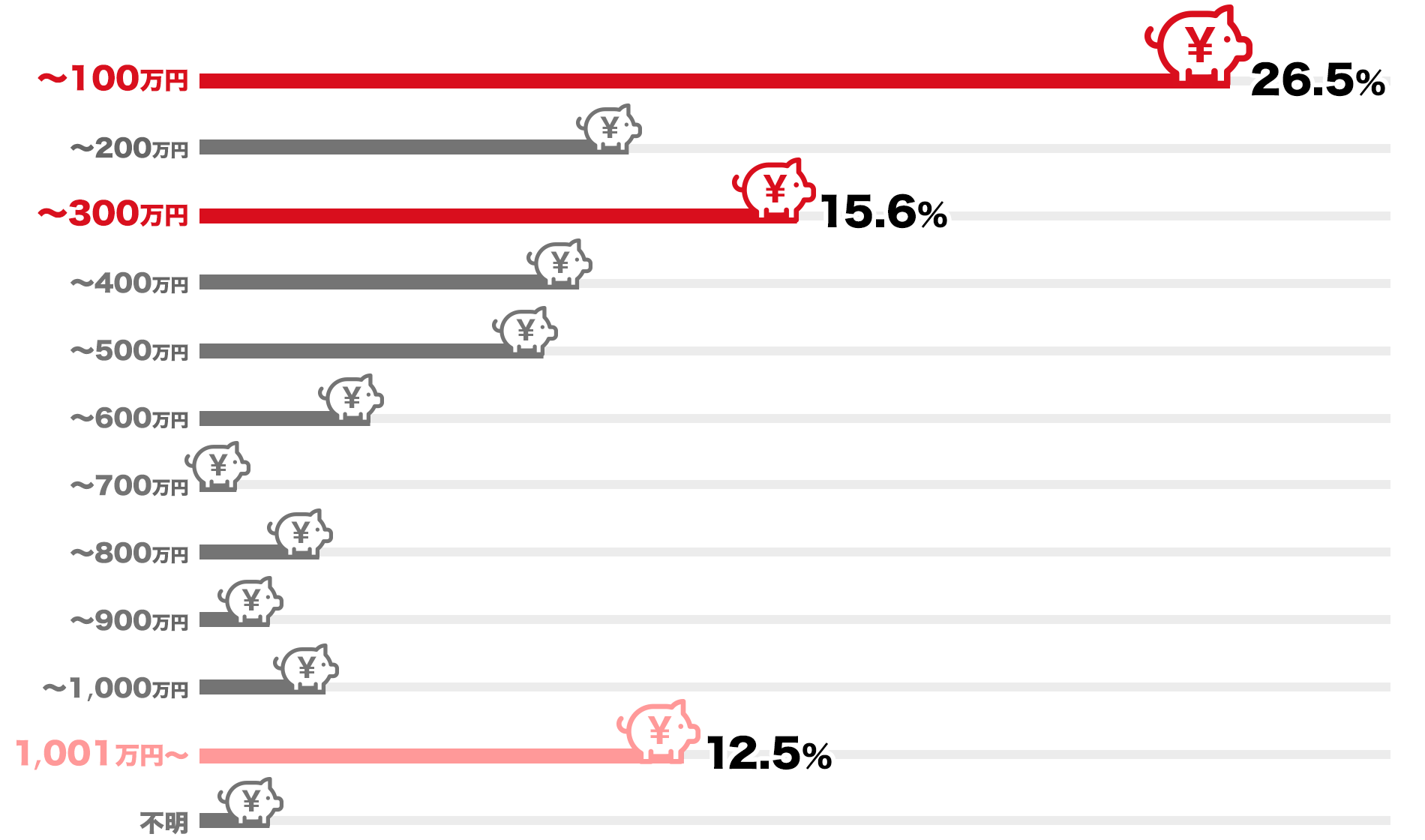「100万円以下」と答えた方が最も多く26.5%。頭金が300万円以下で購入された方が全体の半数を占めています。ご両親から援助を受けて、1,000万円以上の金額を準備する方も多いです。