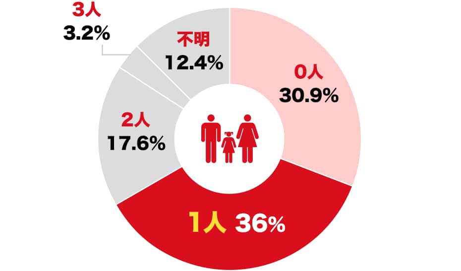 一般的に結婚を機に家の購入を決断する方が多いと言われています。実際にお子様の人数は「 1人以下が約66%」、第1子出産のあとや新婚のうちに購入された方が多いことがわかります。