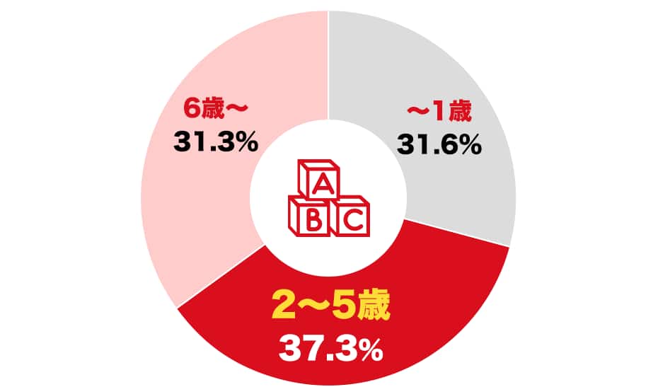 お子様の年齢で見ると「5歳以下が約68%」。転校を気にせずに引っ越しができるよう、小学校入学前までに家を購入するという配慮がうかがえます。