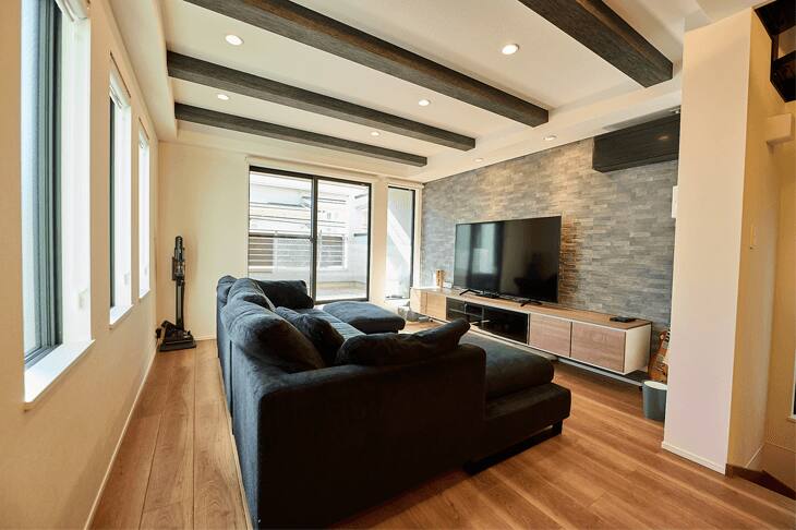 家族が集まる理想のリビング、機能性を重視した快適空間。