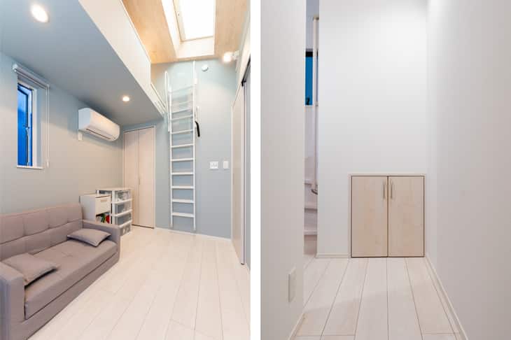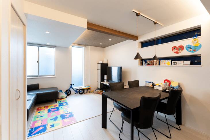 3階にお風呂、洗面所を置くというご提案をいただいたときは、想定外のプランだったのでちょっと驚きました。けれど実際に住んでみるとお風呂から上がってそのまま寝室に行けるのはとても快適で、子どももすぐに寝てくれます。おかげで規則正しい生活リズムがつくれました。一方で1階のサービスルームは夫のテレワークスペースです。宅配便が届いてもすぐに玄関に出られるので、これも1階にして正解でした。生活スタイルに合った動線を考えるのは、大切なことだと感じています。(奥様)