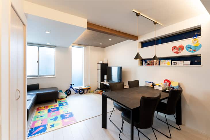 お子様の誕生をきっかけに、1LDKからファミリータイプのマンションへの住み替えを検討されたS様。物件探しの途中でオープンハウスに出会ったことがきっかけで、戸建て住宅へと大きく舵を切ることに。それまで住んでいた同じ区内の土地に新居を建てることができました。たっぷりの収納スペースが自慢の快適なお住まいです。