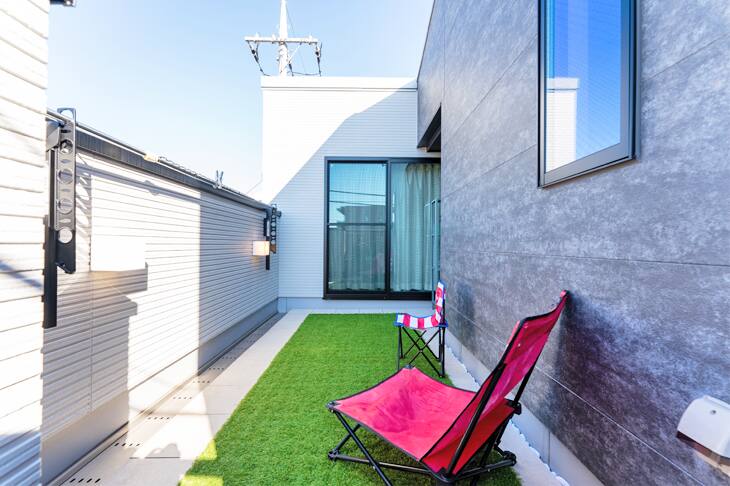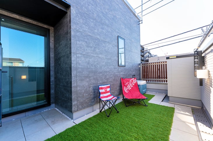 細かなことは妻に任せきりでしたが、私がどうしてもこれだけはと主張したのが、バーベキュースペース。庭が取れなかったので、代わりに3階の居室を1つ減らしてバルコニーにしました。約6畳の広々としたスペースです。ここには設計の方にお願いしてタイルを敷いていただき、人工芝も敷きました。夜はじかに寝そべって、星空を見ながらビールを飲んでいます。最高の気分ですよ。本格的なバーベキューはまだやっていませんが、道具は既に買いそろえて主寝室の収納にしまってあります。今から楽しみです。(ご主人様)