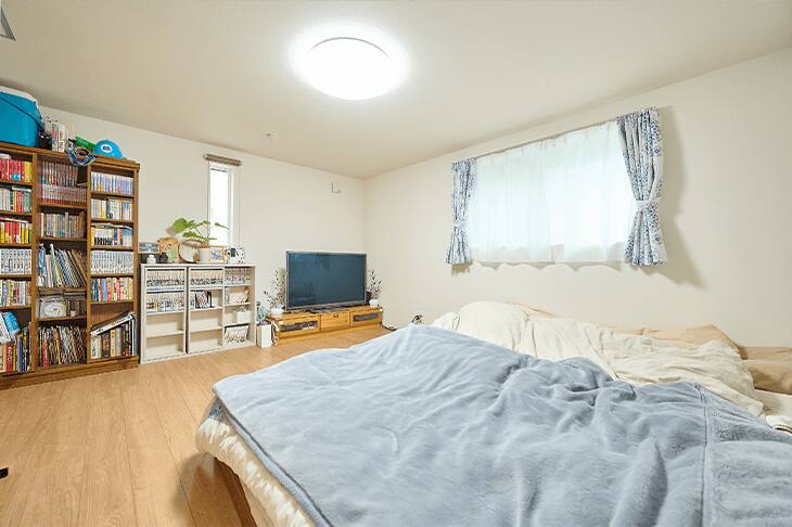 マンションでは収納に不満がありました。とはいえ収納スペースが多すぎると、つい無計画に買い物をして、モノも際限なく増えてしまいます。過不足ない、ちょうどいい収納スペースを心がけました。基本的にはその部屋で使うモノはその部屋で収納することにしています。クローゼットは主寝室と娘の部屋につくりました。ゲーム好きなので以前はゲーム機なども乱雑にケースにしまっていたのですが、今はテレビ下の収納に全部収めてすっきり。主寝室にも本棚を置いて、以前処分したコミックを改めて買い直しました。(ご主人)