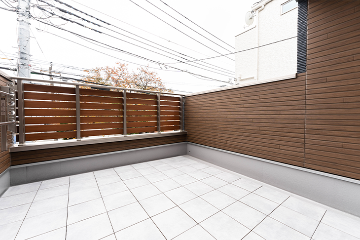 2階リビングにつながるバルコニーは、広めに取りました。以前の賃貸マンションのベランダが狭苦しかったので、できるだけ広々としたいと考えていたんです。友人を招いてバーベキューを楽しんだり、夏にはプールで水遊びをしたりしています。腰壁を高めにしてもらったので外からの視線も気になりません。リビングルームとの一体感もあって、室内も広く感じます。家の前の公道には大きな桜の木があり、春にはリビングルームにいながらお花見ができます。(ご主人)