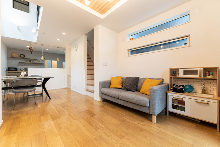 横浜市の賃貸マンションにお住まいだったA様。以前から「どうせ家賃を払うなら持ち家を」と話し合っていたところ、同じ町内に格好の物件が出たとのことで、迷わずご購入を決定されました。ご入居は、娘さんの出産後。明るく、開放的な空間でご家族3人の暮らしを楽しんでいらっしゃいます。