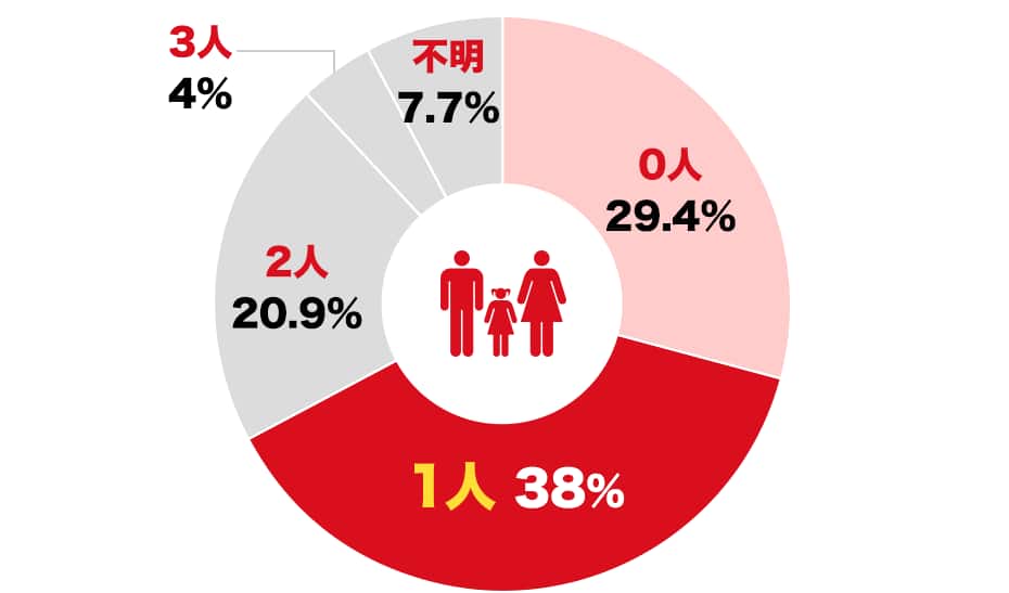一般的に結婚を機に家の購入を決断する方が多いと言われています。実際にお子様の人数は「 1人以下が67.4%」、 第1子出産のあとや新婚のうちに購入された方が多いことがわかります。