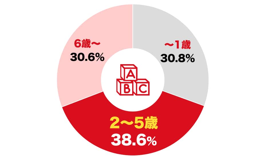 お子様の年齢で見ると「5歳以下が約70%」。転校を気にせずに引っ越しができるよう、小学校入学前までに家を購入するという配慮がうかがえます。