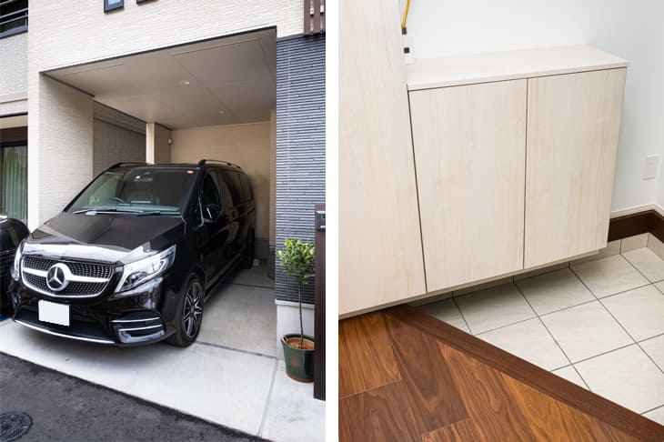 私が「どうしても」とこだわってお願いしたのは、ガレージです。販売図では小型の車が入る広さでしたので、ちょっと大きめの愛車も置けるよう、広げていただきました。その分、玄関などが狭くなったのですが、「玄関の上がり框を斜めにした方が広く使えますよ」といった具合に新たな提案をフィードバックしてくれました。浴槽を広くしたいという私の希望に対しても「そうすると隣の客間が狭くなります」と、教えてくれました。私たちの希望を聞くだけでなく、できないことはできないとしっかり伝えてくれる姿勢は、信頼できました。(ご主人)