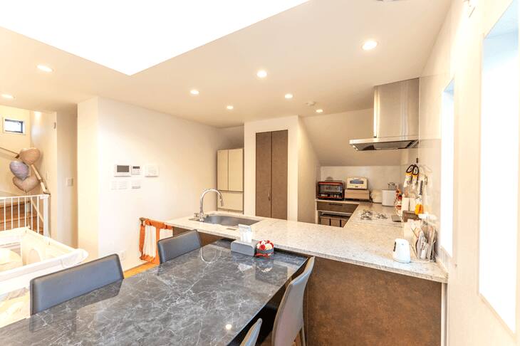 娘が大きくなったら、一緒にキッチンに立つのが楽しみです。私が小柄なので、作業がしやすいよう、標準よりワークトップの高さを5センチほど低くしていただいたのも、設計の方の提案でした。