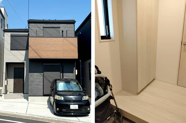 もともとの家はベースが真っ白で、そこが好きで住んでいました。今回の家は外装はシックな感じですが、内装は床も壁も白くてそこが気に入っています。また、建売ではあるのですが、玄関も白ベースでとても広くベビーカーなどを気にせず収納できるところが便利で気に入っております。(奥様)