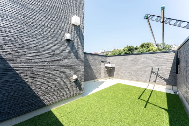 まだ人工芝を敷いただけですが、いずれ植栽なども整えたいと思います。また、子どものプール遊びやバーベキューなども楽しみです。ご提案のおかげで、暮らしの楽しみがずいぶん広がりました。(ご主人)