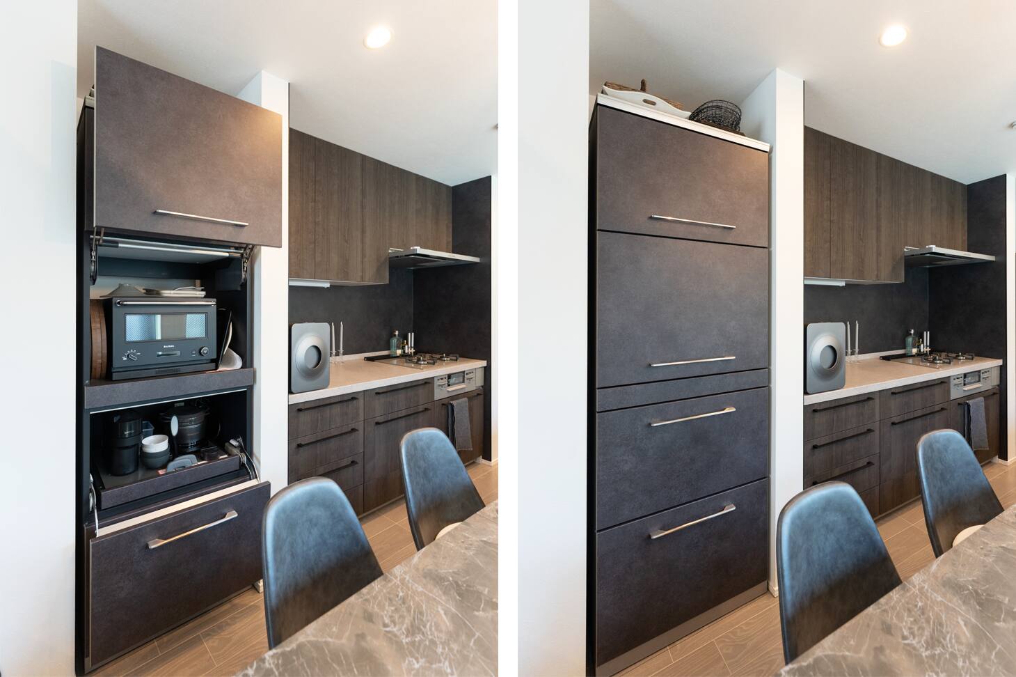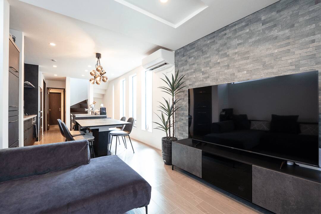 家電製品もできる限り収納できるスペースを確保しました。生活感が出てしまうものを隠すことで、リビング全体がより洗練された印象になったと思います。(ご主人)