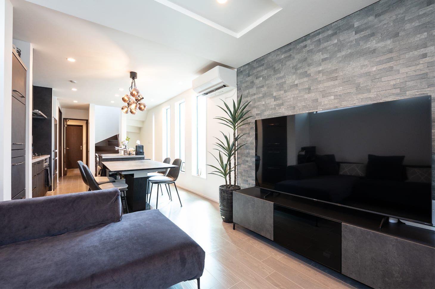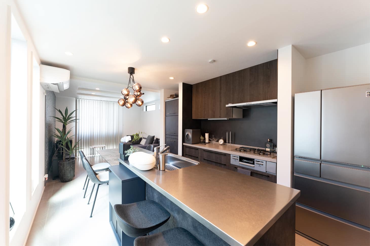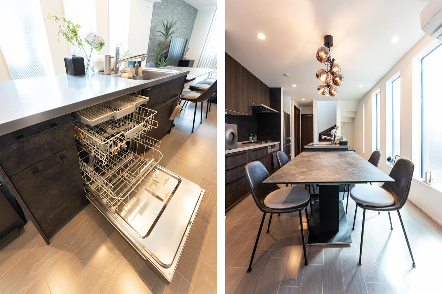 効率と美しさを両立!大型食洗機付き二の字型キッチンと空間デザイン。