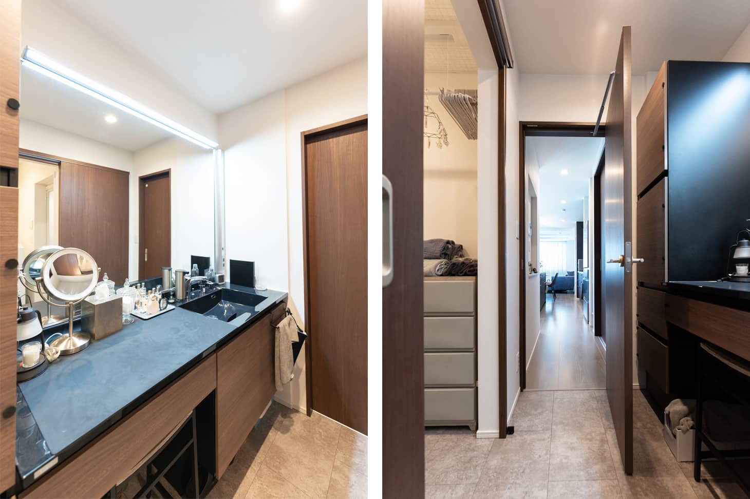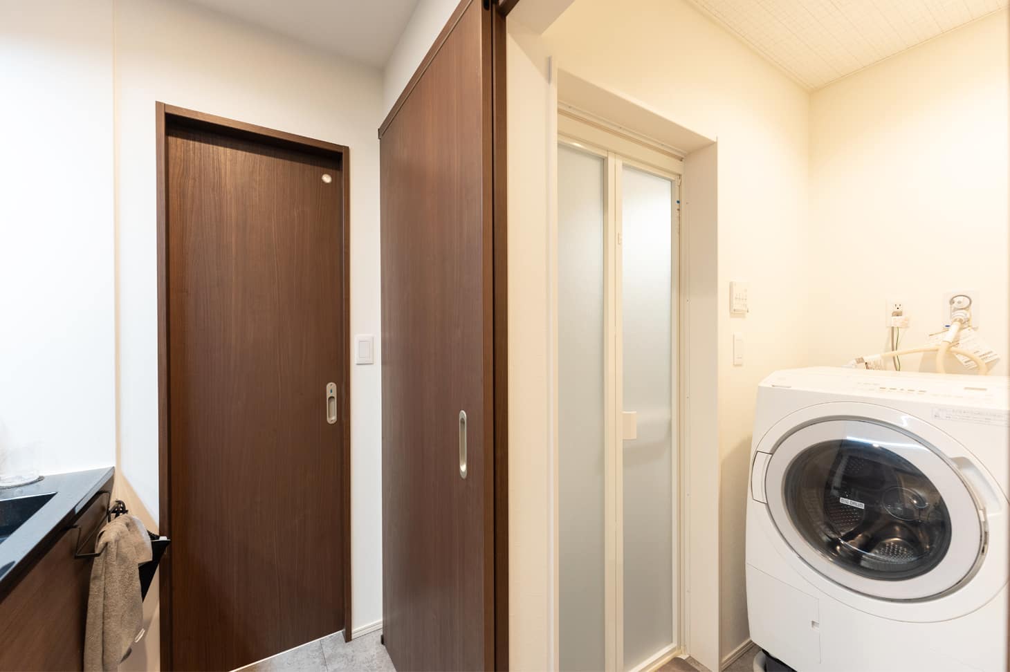 生活感をなくしたいという思いも強く、キッチンに合わせて水回りを2階にまとめる間取りにしました。洗濯機や洗面台も、扉を閉めれば見えないので、急な来客時でも慌てることなく、いつでもすっきりとした空間を保てています。(奥様)