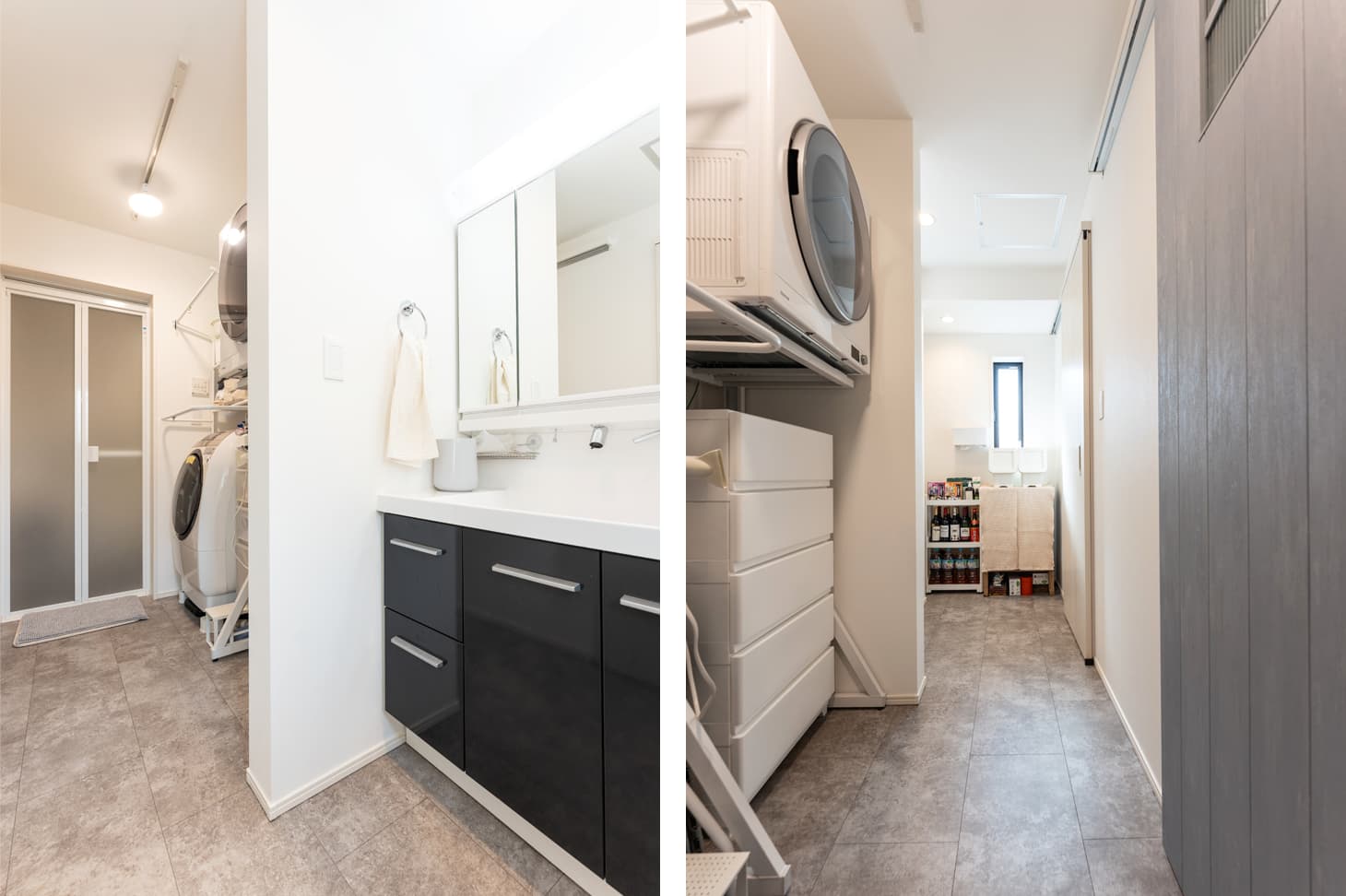 脱衣所と洗面所を分けたレイアウトは、朝の混雑が解消され大正解でした。ガス衣類乾燥機を導入したおかげで、洗濯から収納までが一箇所で完結し、あちこちに移動する手間がなくなりました。水回りのストレスが激減し、本当に重宝しています。(奥様)