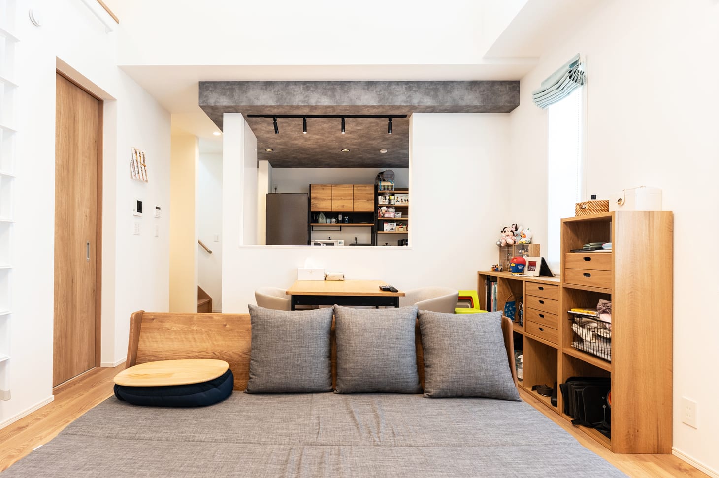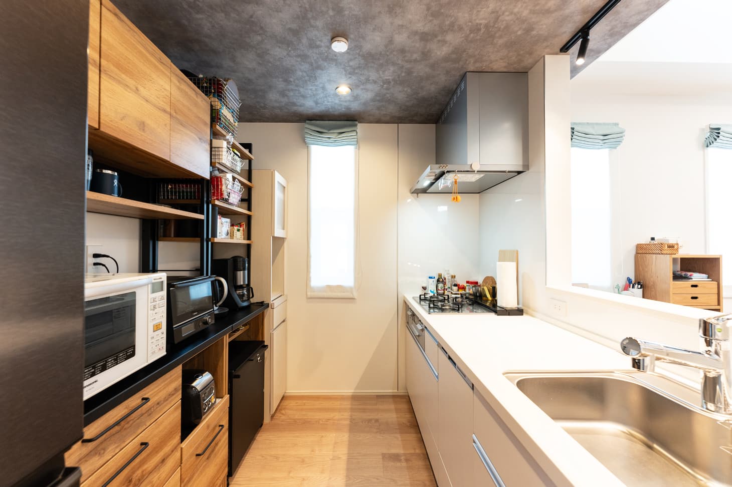 対面式のキッチンや、キッチンの位置は最初の提案から変わらなかったのですが、キッチンの背面側が隣のアパートと近いので、設計担当の方と相談して、背面を閉じる間取りにしたんです。(ご主人)