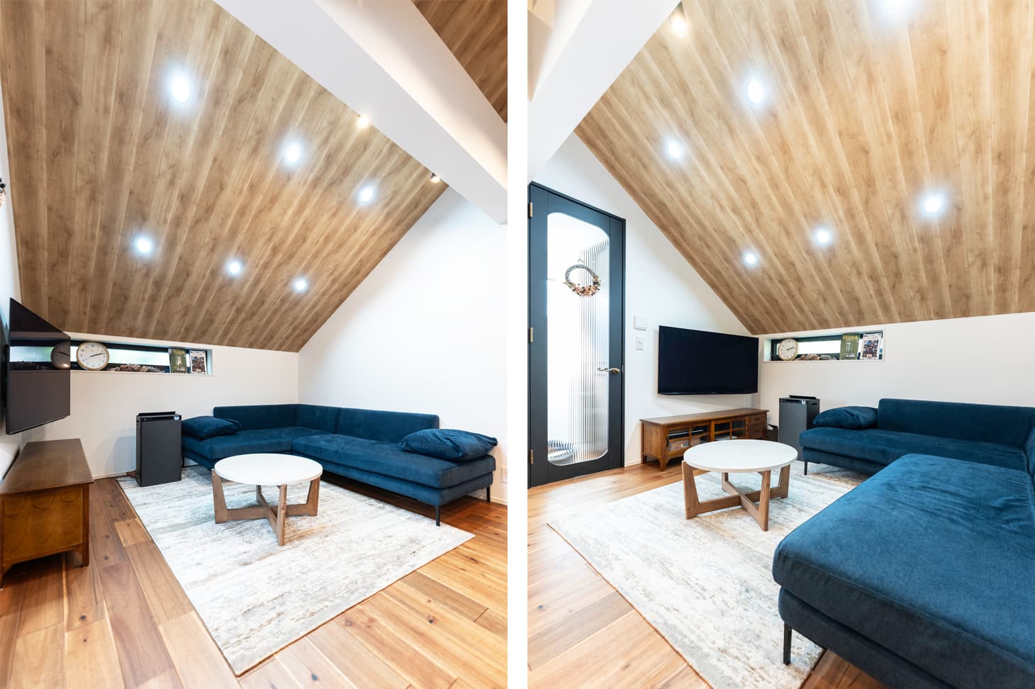 勾配天井にしたのもその一つで、開放感が全然違います。窓を増やしたことで光がたくさん入ってきて、とても開放的で明るい空間になりました。