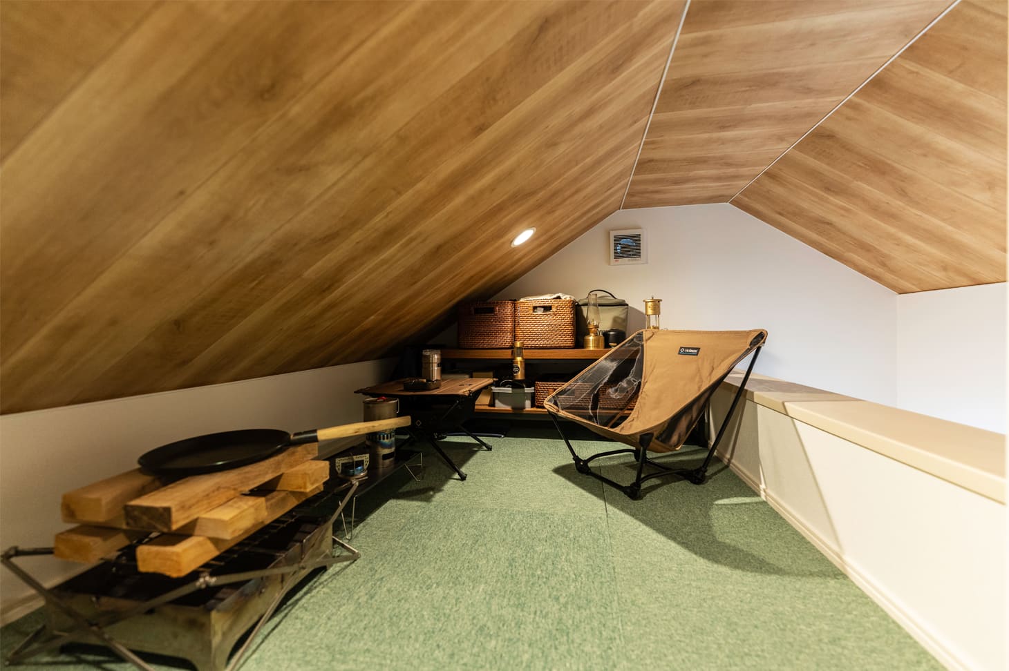 また、私の希望でロフトは絶対にほしいと思っていました。今はキャンプ用品をおいて趣味の空間として活用しています。(ご主人)