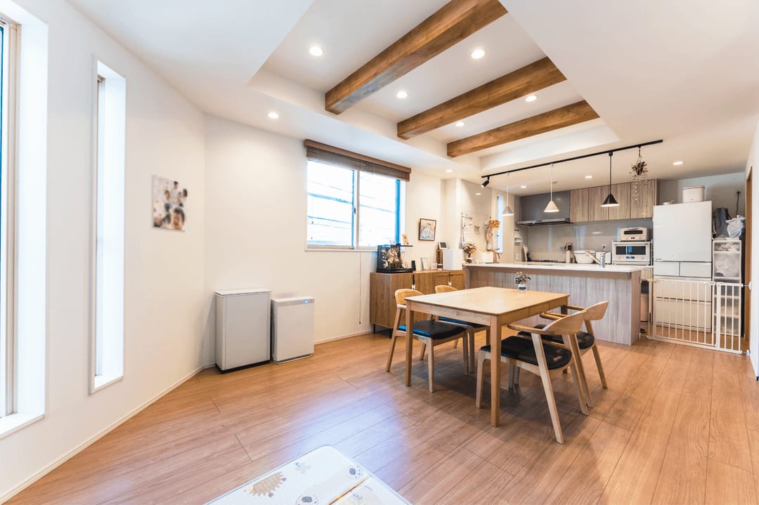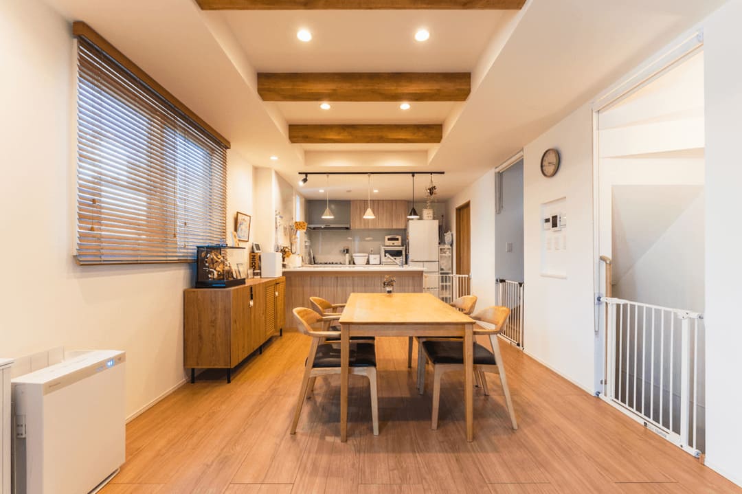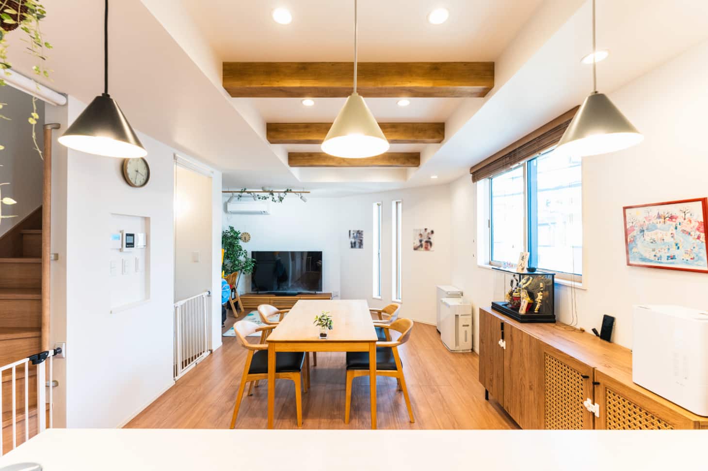 一番こだわったのは、2階のリビングです。家族で一番長く過ごす場所なので、デザインと使い勝手の両立を追求しました。内装のデザインは、コテージ風の温かみのある雰囲気にしたいと思っていました。そのため、あえて天井の「梁」を見せるデザインにしてもらったんです。リビングを広くなるように設計担当の方には様々な工夫をしていただきました。何度も細かな調整を重ねたのは良い思い出ですね(ご主人)