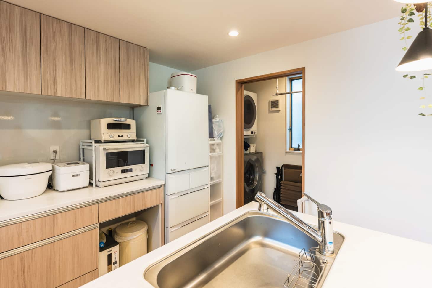 家事のしやすさも劇的な変化がありました。キッチン横のパントリーに洗濯機と乾燥機を置いたんです。おかげで料理を作りながら洗濯・乾燥が同じフロアで完結します。(奥様)