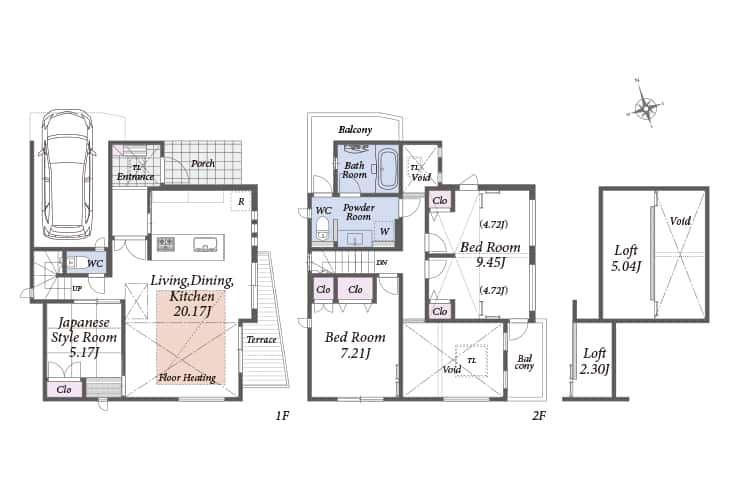 20.17畳のLDKには、5.3mの大吹き抜け。