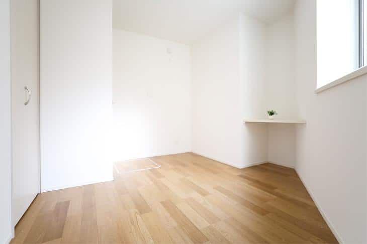 1階にある5.08畳のサービスルームには、コーナーのニッチスペースを活かした棚を設置。お気に入りの小物を飾ったり、デスクとして活用したり、子どものランドセルの定位置にしたり。豊かな想像力で、使い方が広がります。