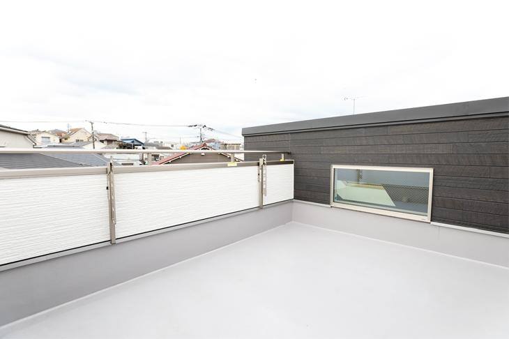 屋上には、6.13畳のルーフバルコニーを設計。洗濯物を干すスペースとしてはもちろん、テーブルや椅子を置いて、もう1つのリビングのような使い方も可能。第一種低層住居専用地域だからこその眺めの良い景色を楽しめます。